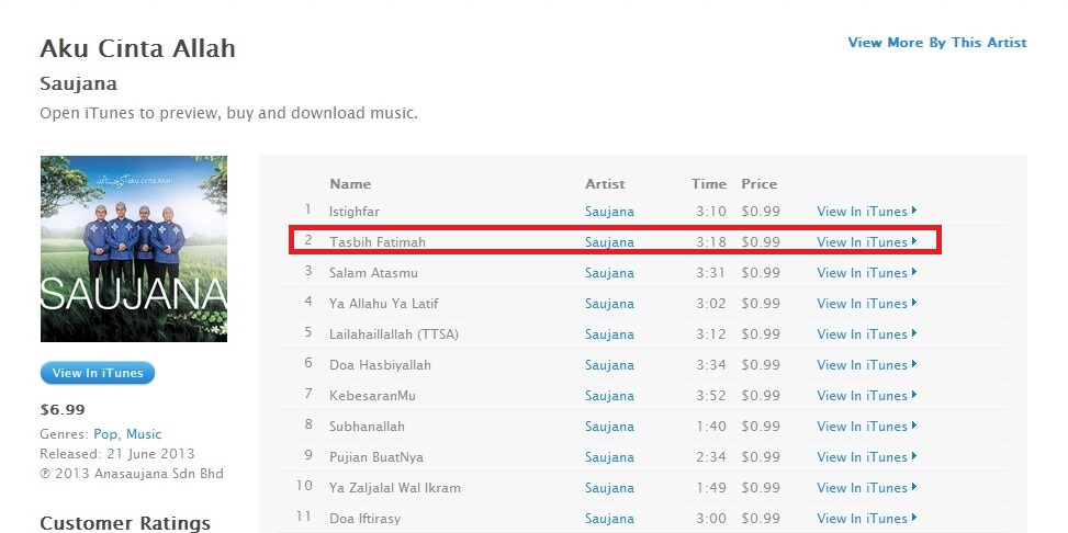 Print Screen di iTunes, Album Saujana – Aku Cinta Allah.