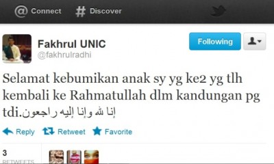 Pihak Munsyeed{Dot}Com menzahirkan ucapan takziah buat Fakhrul Radhi Khamaruddin atau Fakhrul UNIC atas pemergian anak kedua beliau yang telah meninggal di dalam kandungan pada pagi...